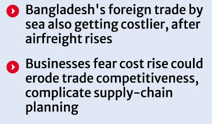 Global container shipping lines begin raising freight rates to make up for higher fuel costs, with several operators also imposing additional surcharges, inflating cost of Bangladesh's international trade.