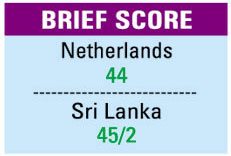 Earlier, Wanindu Hasaranga and Lahiru Kumara took three wickets each as Sri Lanka dismissed Netherlands for a paltry 44.