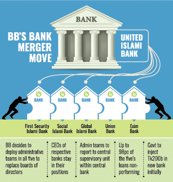 Administrative teams will be deployed in five troubled Shariah-based banks for their merger into a single state-owned bank under an overhaul recipe, in a much-anticipated intervention in Bangladesh's banking sector.