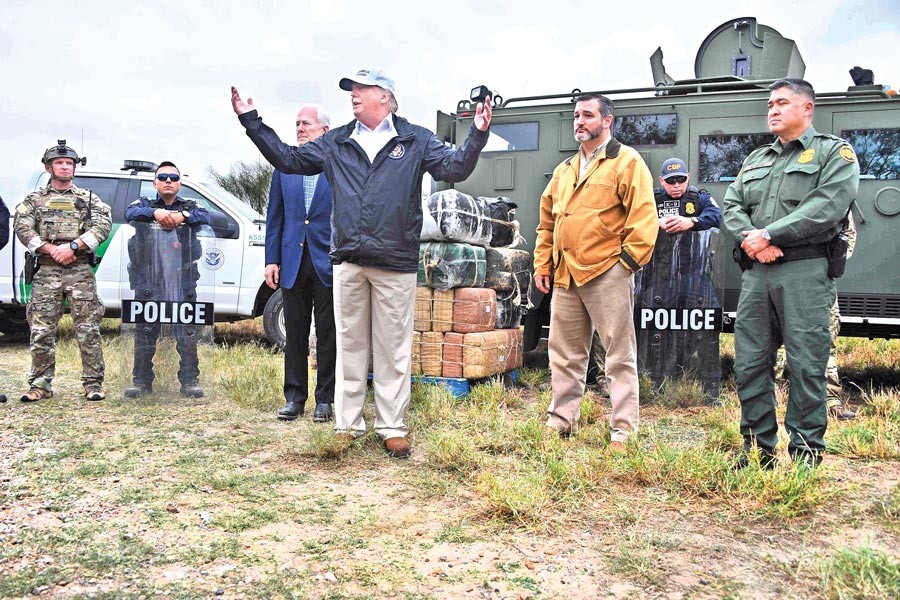 US President Donald Trump speaking after he received a briefing on border security next to Sen John Cornyn (left) and Sen Ted Cruz (second right) near the Rio Grande in McAllen, Texas, on Thursday — AFP MCALLEN (United States), Jan 11 (AFP): President Donald Trump warned of murderers and gangsters spreading across the country during a visit to the US-Mexican border Thursday to push his demand for a multi-billion dollar wall.