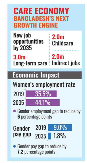 Investment in early-childhood care and education and long-term care services in Bangladesh could generate more than 7.0 million new jobs by 2035.