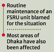 Officials of Titas Gas Transmission and Distribution Company Limited said the shortage resulted from maintenance work at a unit of a floating storage and regasification unit (FSRU), which disrupted overall gas supply.