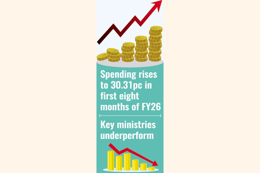 Bangladesh's development-budget execution has shown modest improvement in the current fiscal year (FY 2025-26), with public agencies completing just over 30 per cent of planned spending in the first eight months.