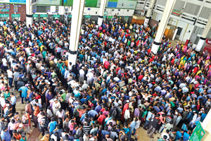 The condition was the worst at Kamalapur Railway Station as people standing in the queues were nearly ten times higher than the allotted tickets, officials said.