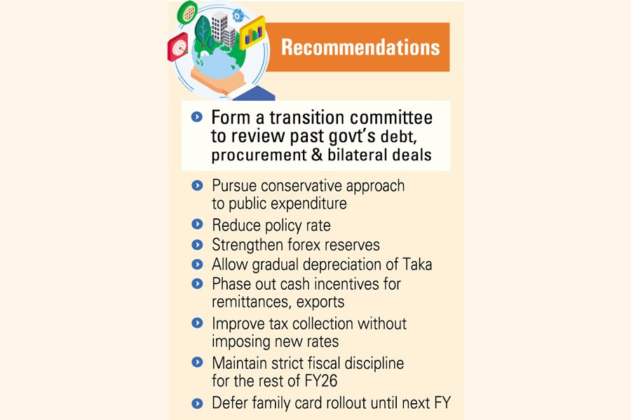 It also recommended reducing the policy rate by the central bank, further strengthening the foreign exchange reserve, allowing a gradual depreciation of the Bangladeshi taka, phasing out cash incentives for remittances and exports, improving tax collection without imposing new rates, and prioritising the recovery of stolen assets as well as non-performing or bad assets.
