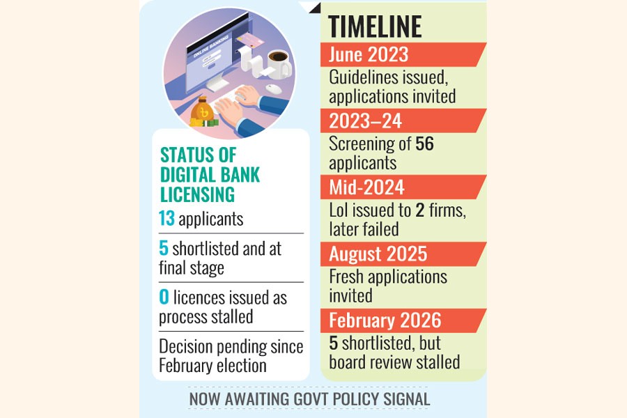 The banking regulator first issued a comprehensive guideline for digital bank before seeking application for licence from the interested companies in June in 2023, during Sheikh Hasina's governing regime, and some 56 companies and consortiums submitted applications.