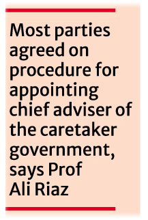 Most parties agreed on the procedure for appointing chief adviser of the caretaker government, Vice-Chairman of the National Consensus Commission Prof Ali Riaz said while briefing journalists after the 15th day of the second phase of talks between the political parties and the commission at the Foreign Service Academy in the city.