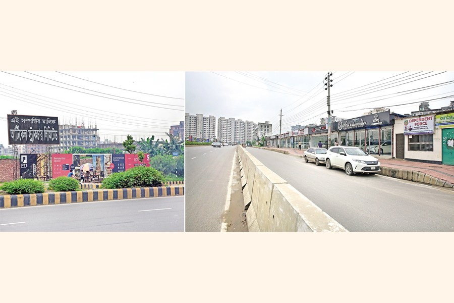 The long row of car showrooms seen on the right emerged from nowhere soon after the fall of the autocratic regime on August 05 last year. None knows who owns the land on which those shops are built. Before August 05, most part of the vacant land along both sides of the Matikata Road, which has literally contributed to the demise of the water body, popularly known as Bhasantek Beel, carried the signboards of one 'Online Group'. Signboards are not seen much these days. In some areas, signboards carrying a new name ' Article Structures Limited' have been erected. In fact, lawfully, the land beneath the water body being 'khas' belongs to the government. As the relevant government agencies preferred to be indifferent, the plunder of land has been going on unabated. In the meanwhile, filling of the water body in an unplanned manner has been causing serious waterlogging in Mirpur 10, Mirpur 11 and Mirpur 12. —FE photo by K Asad-Uz-Zaman