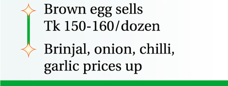 Egg prices witnessed a major decline, while brinjal, onion, chilli, garlic and cucumber prices rose notably in the market this week, intensifying woes of the commoners.