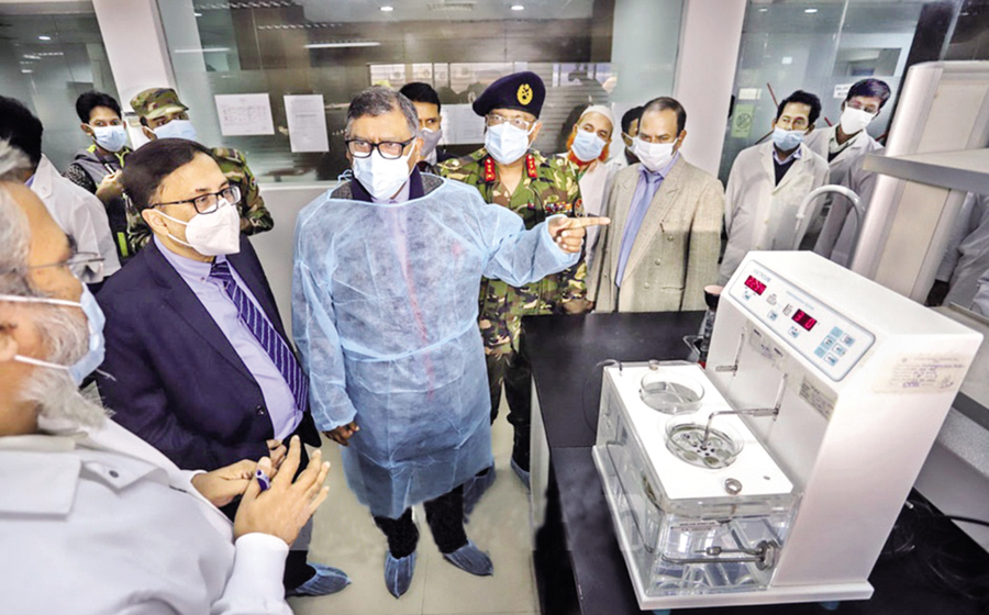 Health Minister Zahid Maleque visits a laboratory, set up by the Directorate General of Drug Administration to test medicines and vaccines, in the city on Sunday — bdnews24.com