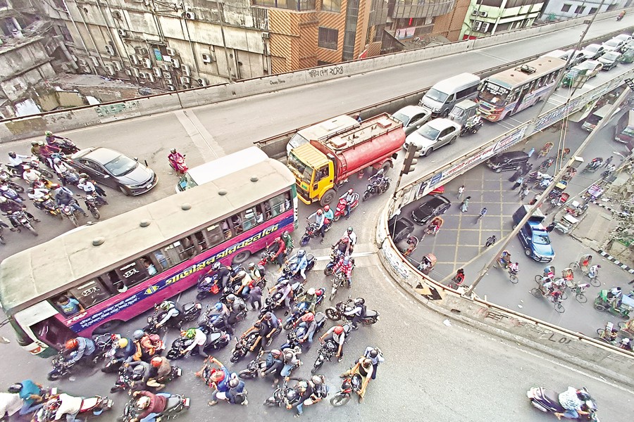 Heavy traffic clogs the Malibagh-Moghbazar flyover