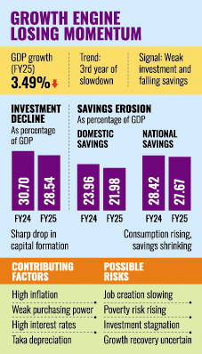 Economists warn that the twin decline in investment and savings could have far-reaching consequences for employment, income growth and poverty reduction, raising fresh concerns over the country's macroeconomic stability.