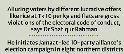 Dr Shafiqur Rahman said alluring voters by offering different types of cards, offering rice at Tk10 per kg and flats are gross violations of the electoral code of conduct.