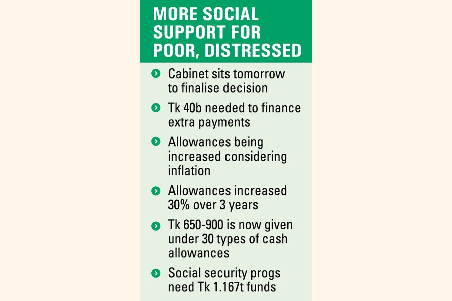 The interim government is likely to enhance allowances for distressed people from the next fiscal year as the cabinet committee concerned will sit tomorrow to finalise the decision, officials say.
