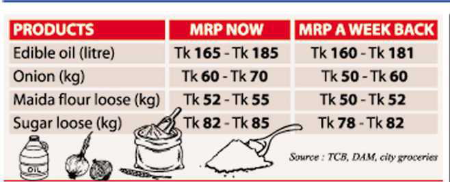 Loose sugar price also increased by Tk 2.0-3.0 a kg, selling at Tk 82-85 a kg, while packet sugar remained at previous high of Tk 85-95 a kg, according to groceries.