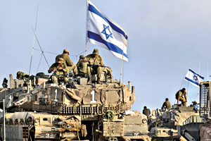 Israeli soldiers work on their Merkava tanks in an army deployment area near Israel\'s border with the Gaza Strip Sunday. — AFP photo
