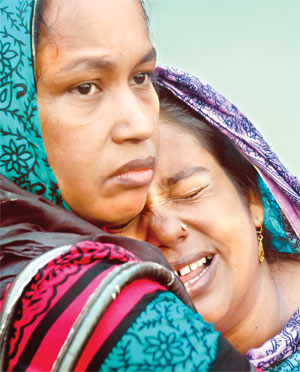 Photo: Relatives of the two women, killed in an accident in front of Hotel Ruposhi Bangla