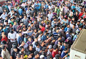 Photo: Ticket-seekers thronged the bus counters of private operators at Gabtoli