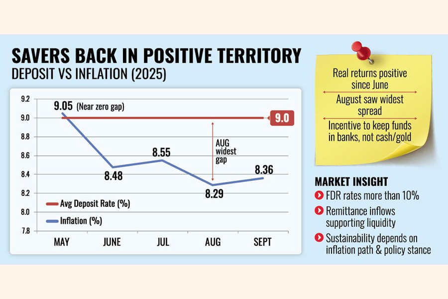 The favourable trend continued into September. Deposit rates remained above 9.0 per cent, while inflation was recorded at around 8.36 per cent, ensuring that real returns stayed positive for the fourth consecutive month.