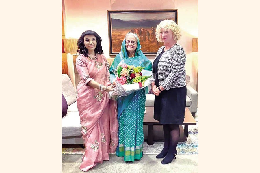 Prime Minister Sheikh Hasina is welcomed