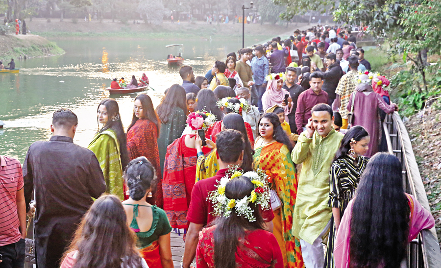 Ramna Park in the capital fills with a vibrant crowd of men and women in colourful