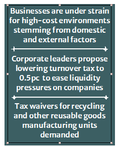 They also proposed lowering the turnover tax to 0.5 per cent in the upcoming budget to ease liquidity pressures on companies and support their expansion.