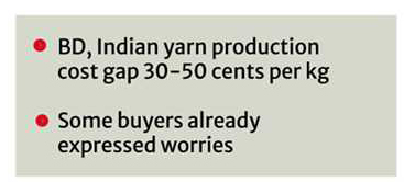 According to industry sources, some buyers have already expressed worries as they have nominations to import yarn from Indian spinners due to lower production costs.