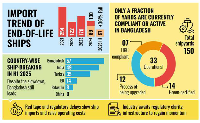 Bangladesh's ship-breaking industry is facing significant headwinds, with imports of scrapped vessels plunging by 36 per cent in the first half of 2025.