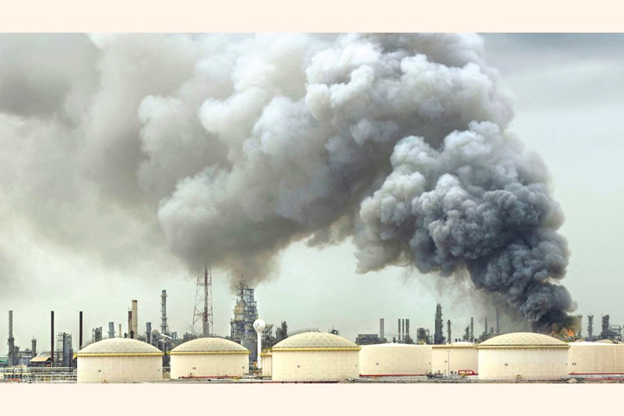 Smoke rises following a strike on the Bapco Oil Refinery on Sitra Island, Bahrain. — Reuters