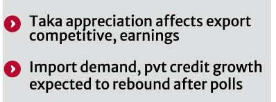Dr Hossain adds that the ample inflow of foreign exchange is a key reason behind the taka's appreciation.