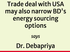 About the external risks, Dr. Bhattacharya warned that a recently signed reciprocal trade agreement with the United States (US) could narrow Bangladesh's energy sourcing options.