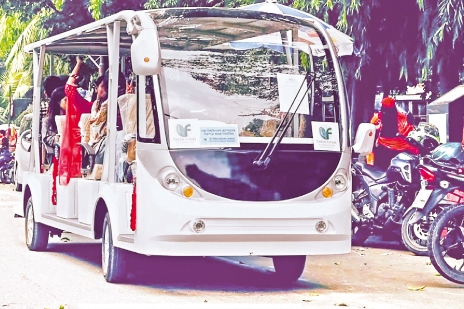 Shuttle service at University of Dhaka This innovative experiment has been taking place in one of the capital's busiest residential centres. It is set to change the daily commute of thousands of commuters. Now, the concept of the electric shuttle bus in the bustling area of Bashundhara promises to become a radical attempt to alleviate a perennial annoyance, exorbitant rickshaw fares.