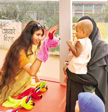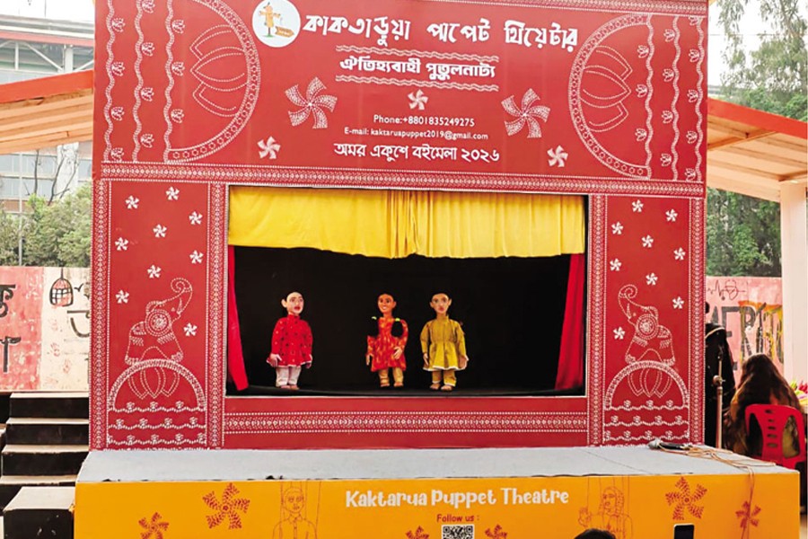 One of the main attract for the children in the book fair was the puppet show and the Bioscope. This segment not only attracted the children, but also people of all ages. The author has observed many people gathering around the stage to enjoy the puppet show, or at least peeking amid the crowd. Mohammad Robin, a member of the management team at Kaktarua Puppet Theatre, shared his entire initiative and experience regarding hosting their shows. "We plan to create a segment where the children can watch a fun, educational puppet programme, and we are hopeful for a creative approach. Mostly on weekends, children's engagement is higher than on other days. On weekdays, mostly teenage and students are enjoying the show besides children."