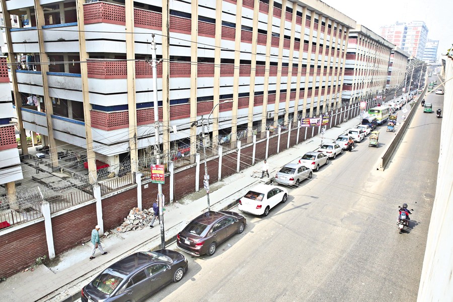 Amid CNG supply crunch, vehicles waiting in a long queue in front of a refuelling station (not in the frame) at Rajarbag in the capital on Monday. Scarcity and subsequent skyrocketing prices of both CNG and LPG has recently hit the city dwellers hard. — FE Photo by K Asad-Uz-Zaman