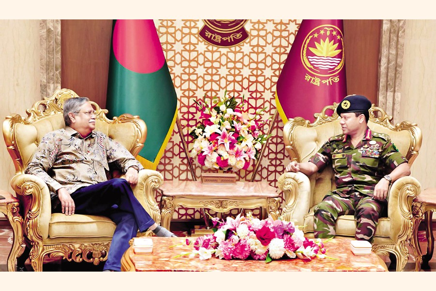 Chief of Army Staff General SM Shafiuddin Ahmed paid a courtesy call on President Mohammed Shahabuddin at Bangabhaban on Sunday — PID