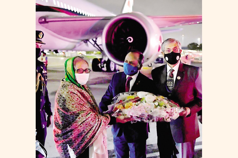 Bangladesh Ambassador in Washington Muhammad Imran and Bangladesh Permanent Representative to the UN Muhammad Abdul Muhith received Prime Minister Sheikh Hasina upon her arrival at the JFK International Airport in New York on Monday. She will attend the 77th session of the United Nations General Assembly (UNGA) — PID