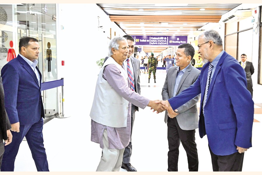 Chief Adviser (CA) Professor Muhammad Yunus was welcomed by Cabinet Secretary Dr. Sheikh Abdur Rashid upon the CA's arrival at Hazrat Shahjalal International Airport in the capital on Thursday, wrapping up his nine-day New York tour. — PID