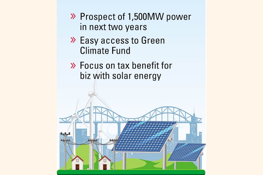 In his keynote, Bright Green Energy Foundation chairman Dipal C Barua said there is great potential to install rooftop solar system, especially on commercial buildings, residential buildings, industrial plants, garment factories, hospitals, metro-rails, rail stations, river ports, airports and other economic zones surrounding highways and embankments.