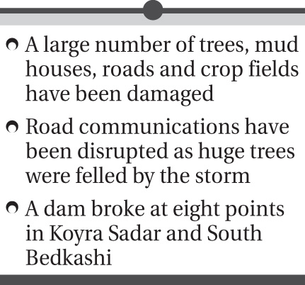 Besides, growers and farmers of the district have incurred a huge loss due to devastation of their raw mangos due to the storm.