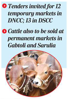 Cattle would also be sold at the permanent cattle markets in Gabtoli (under DNCC) and Sarulia in Demra (under DSCC).