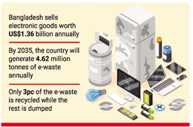 Bangladesh sells electric goods worth US$1.36 billion a year and generates about 2.81 million tonnes of e-waste, of which 40 per cent are refrigerators and 30 per cent televisions.