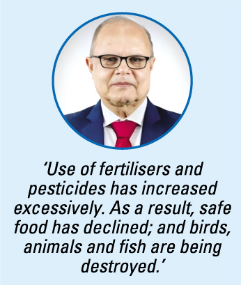 "Since then, the use of fertilisers and pesticides has increased excessively. As a result, safe food has declined; and birds, animals and fish are being destroyed."