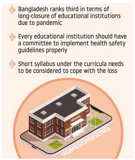 As the Covid infection rate continues to fall, health experts advised the government to immediately take adequate preparations along with a roadmap to reopen the educational institutions gradually.