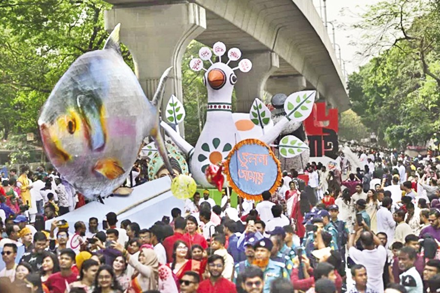 The procession was renamed 'Ananda Shobhajatra' during the tenure of the immediate-past interim government. Before that, it was known as 'Mangal Shobhajatra'.