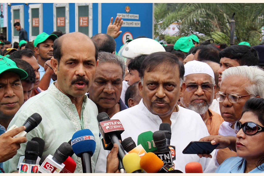 Dhaka North City Corporation Mayor Atiqul Islam talking to journalists before the awareness rally against Aedes mosquitoes on Manik Mia Avenue in the city on Friday — Focus Bangla