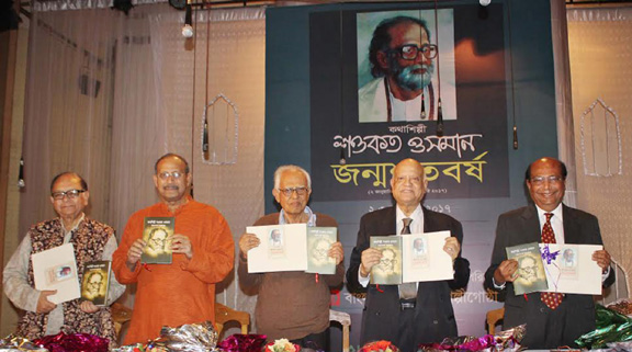 Guests at a book launching ceremony to mark the birth centenary of noted novelist and short story writer Shawkat Osman, organised by Kothashilpi Shawkat Osman Smriti Parishad, at Central Public Library in the city on Monday. — Focus Bangla