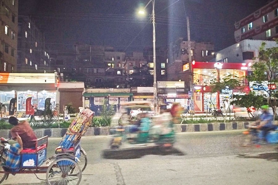 In the absence of enforcement of the government directive, shops dealing in non-essential items remain open in most part of the Dhaka city. The picture was taken at 8.15pm on Friday from the busy Kalshi Road area of Mirpur. — FE Photo