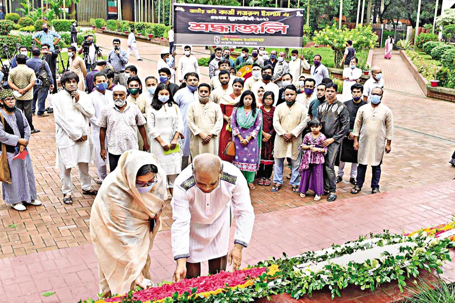 State Minister for Cultural Affairs KM Khalid and Bangla Academy Director General Nurul Huda, among others, paid tributes to the rebel poet.