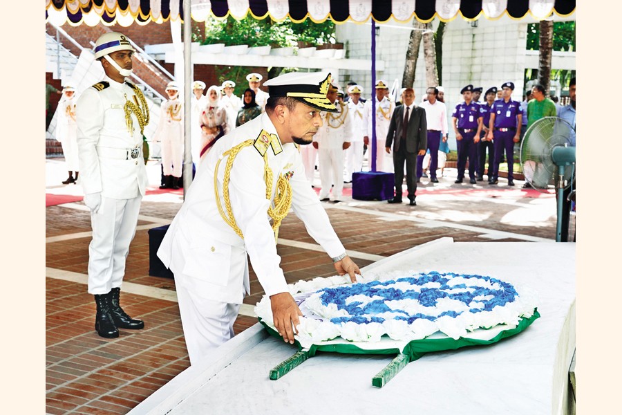 Newly-appointed Chief of Naval Staff Vice Admiral M Nazmul Hassan paid tributes to Father of the Nation