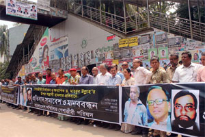 Bangladesh Sommilito Peshajibi Parishad, a combine of professionals, formed a human chain in front of the National Press Club in the city Wednesday protesting attack on Prof Dr Mahbub Ullah. — Focus Bangla Photo